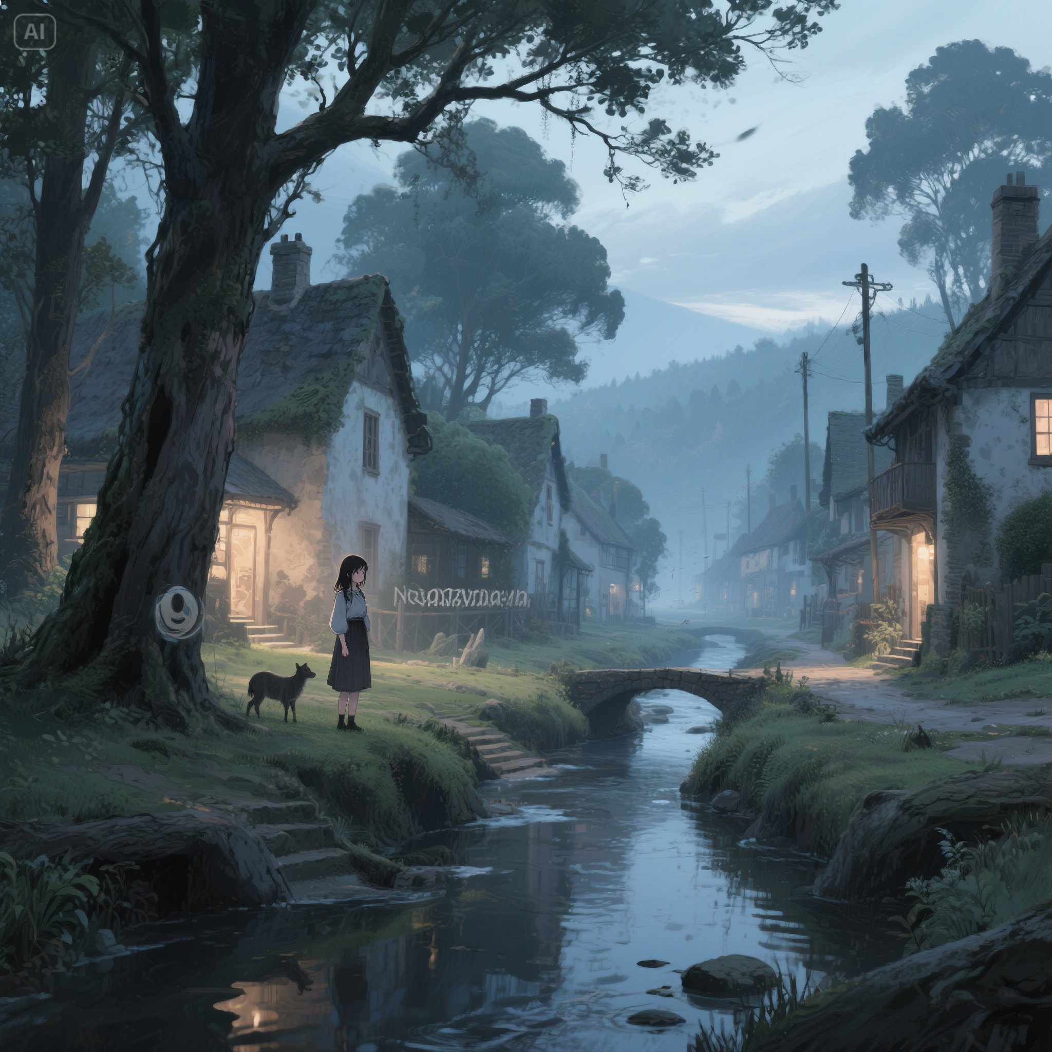 (Masterpiece, Best Quality: 1.2), Ultra Detailed, Cinematic Lighting, HDR, Illustration, Impressive, Inspiring, Chilling, Village, Small River, Old TreeNegative prompt: (worst quality, low quality, girl:1.4), logo, watermark, animals, easynegative,ng_deepnegative_v1_75tSteps: 30, Sampler: DPM++ 2M Karras, CFG scale: 8, Seed: 2211308162, Size: 960×540, Model hash: d7465e52e1, Model: ghostmix_v12, Denoising strength: 0.6, Clip skip: 2, Hires upscale: 2, Hires upscaler: Latent