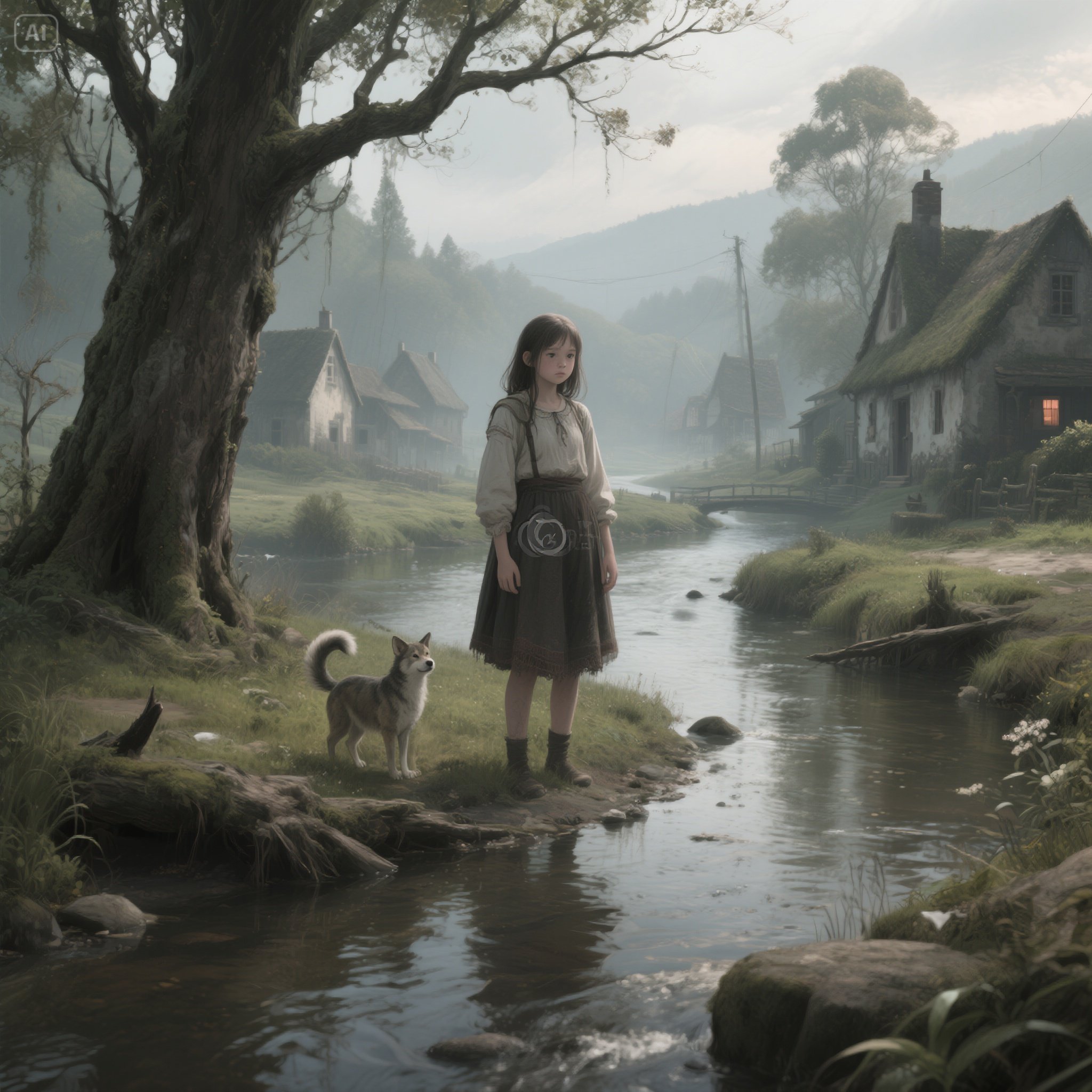 美丽的乡村,女孩带着宠物。现在AI很厉害,细节细腻,现实感很强。
