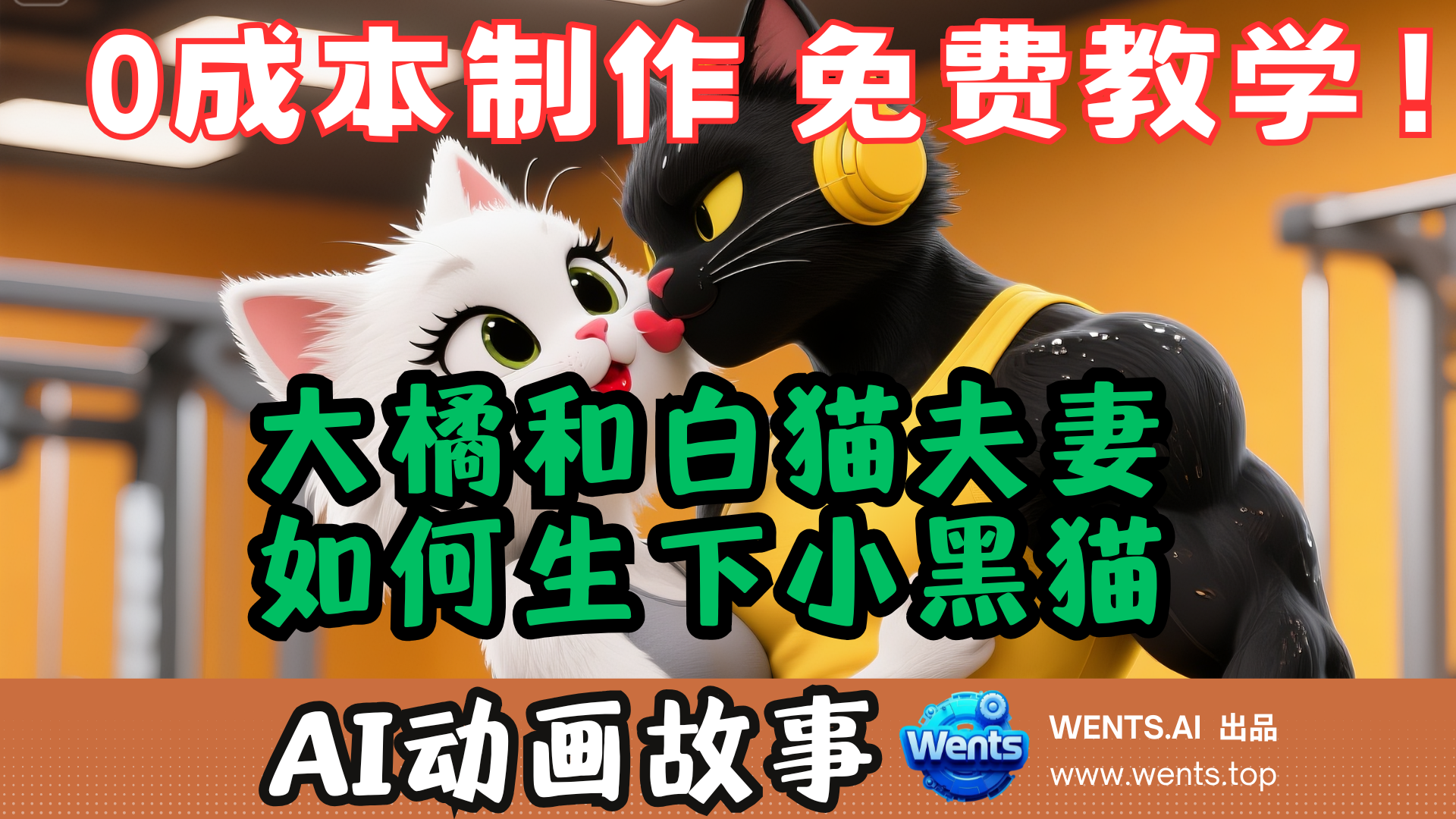 大橘和白猫夫妻如何生下小黑猫–AI动画短剧,0成本原创免费教学,能把任何想法转换成你想生成的视频。不买课程,不冲会员,不换电脑,只要你的关注和点赞。我们的口号就是0成本制作AI视频,一分钱不花带你制作原创作品。
